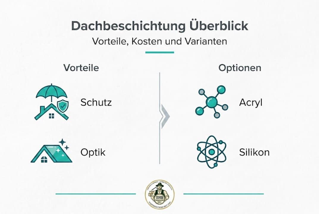 | Kosten und Wirtschaftlichkeit | Beschichtungen sind deutlich günstiger als Neueindeckungen, lohnen sich aber nur für intakte Dächer ohne tiefergehende Schäden. |