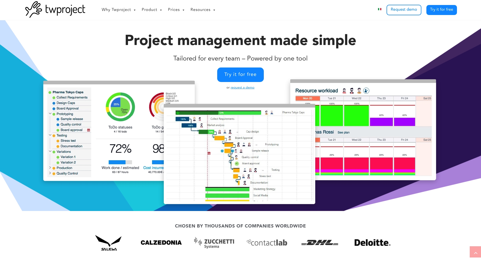 Die Verbindung aus interaktiven Gantt Charts, Echtzeit-Portfolio-Statistiken und integriertem Ressourcenmanagement macht Twproject besonders für Projekte mit vielen Abhängigkeiten wertvoll. Das System bildet Planungsdetails und Kosten in einem Tool ab.