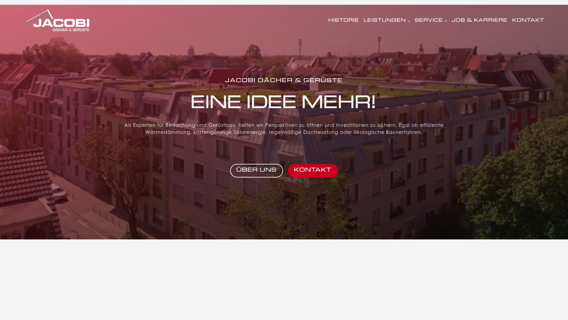 | Jacobi Dächer & Gerüste | Komplettlösungen für Dächer und Fassaden, Gerüstbau, Solartechnik | Tradition, breite Leistungspalette, gut geschulte Mitarbeiter | Unübersichtliche Website, keine Online-Anfrageoption | jacobi-daecher.de |