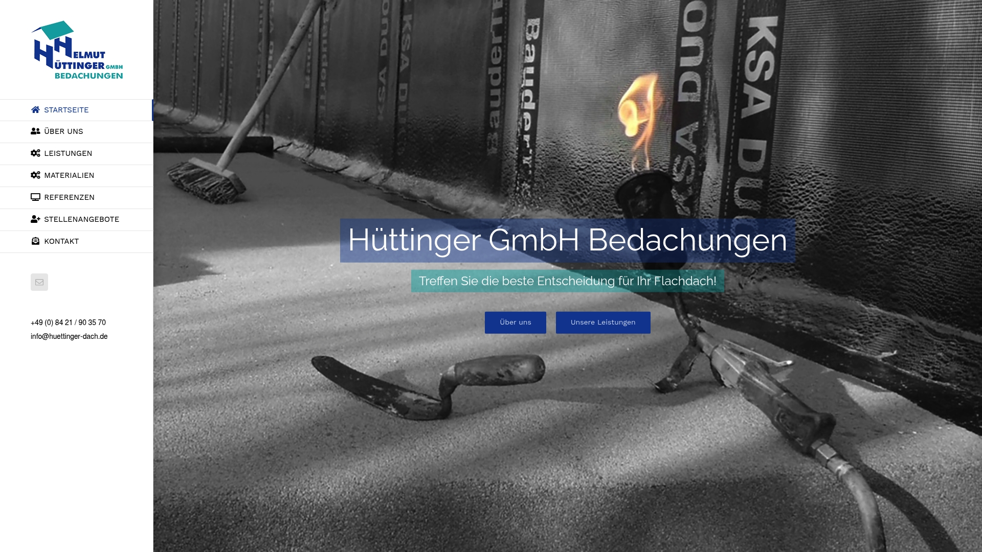 Hüttinger GmbH Bedachungen präsentiert sich als spezialisierter Anbieter für Flachdachlösungen mit klarem Fokus auf Qualität und fachliche Beratung. Die Seite liefert einen soliden Ersteindruck, bleibt aber bei Leistungsdetails und Preisen eher zurückhaltend.